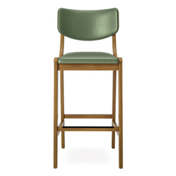 • Banqueta Desidera com assento estofado e encosto em madeira